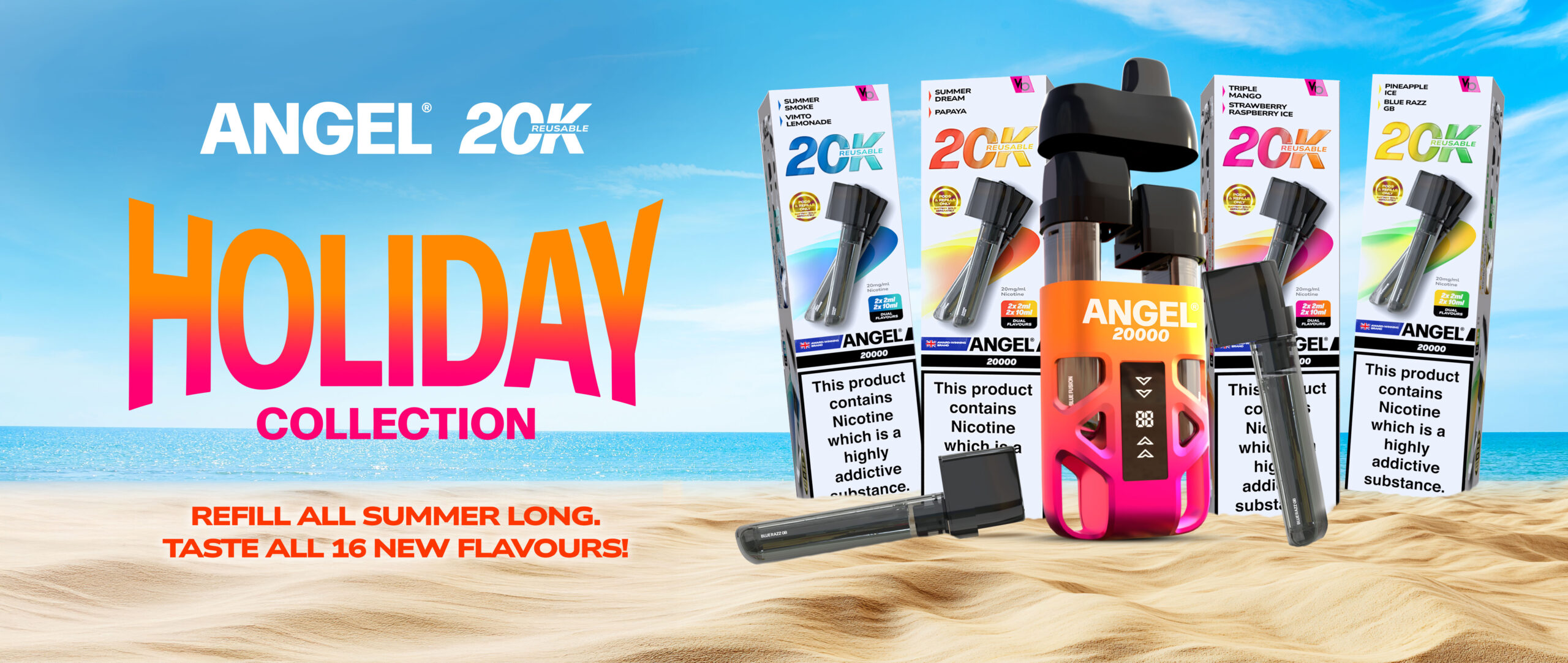 Angel® 20K is a next-gen vape with up to 20,000 puffs, replaceable pods, attachable refills, anti-leak tech, and a self-refilling system. UK 2025-compliant, XXL capacity, and 26 top flavours—built for the future!